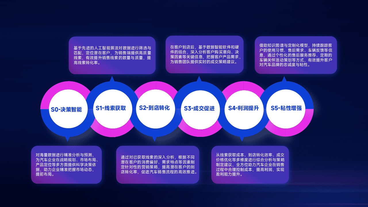 通过拓宽潜在客户来源、、、优化线索分配并提高到店转化率,,以增强销售效率。。同时,,,,利用线索数据不断优化分析模型,,有效提升转化率,,,,扩大营销影响力。。